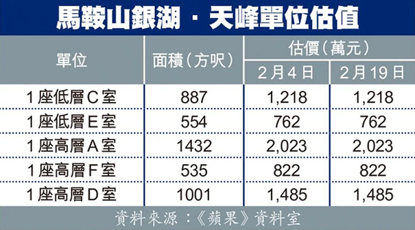 | 而同屬疫廈的馬鞍山銀湖.天峰,儘管1座錄住客確診,惟未進駐「死亡疫廈」,該座估值本月初至今暫未變動。 |