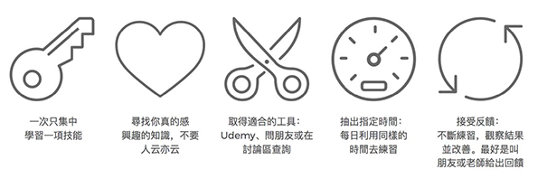 在開始20小時練習前,你需要先做一些準備,下面五個點,在準備好後,將對你的學習有更好的幫助。