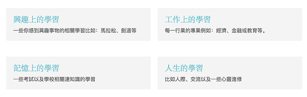 比如,筆者一直都想進修物理學,但我發現事實上兩者都和我的工作或學業無關,這令我以為學習它沒有任何意義而放棄。 但是,當我把它放在興趣或人生的學習矩陣時,學習它便有一個更清晰的意義了。